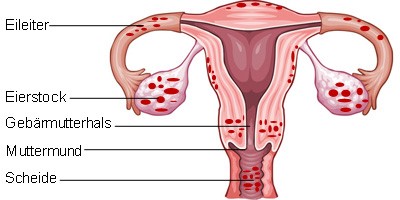 Circa 10 % der Frauen leiden unter einer Endometriose. Hierbei finden sich versprengte Gebärmutterschleimhautzellen auβerhalb der Gebärmutterhöhle.